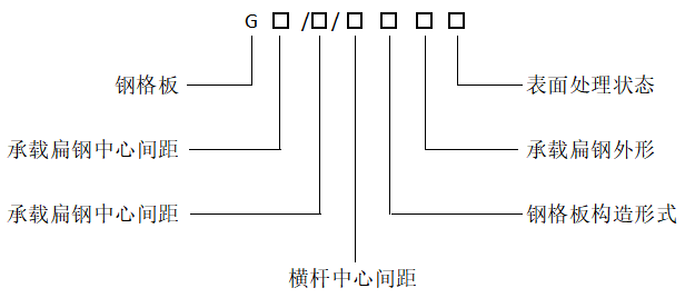 舉例:G253/30/100PG以上規格是采用25×3普通平面型扁鋼,扁鋼間距為30mm,橫桿間距為100的熱鍍鋅鋼格板。