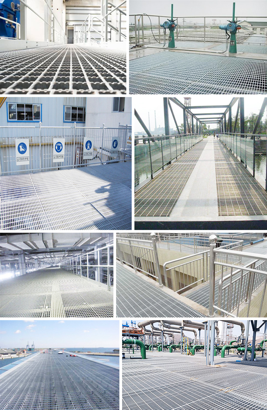主要用作工業平臺,鍋爐平臺,環保設備,梯踏板,扶欄,通道地板,鐵路橋側道,高空塔架平臺,排水溝蓋,井蓋,道路隔柵,立體停車場,機關、學校、工廠、企事業、運動場、也可用作民宅的外窗,陽臺護欄,高速公路、鐵路的護欄等。